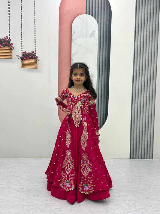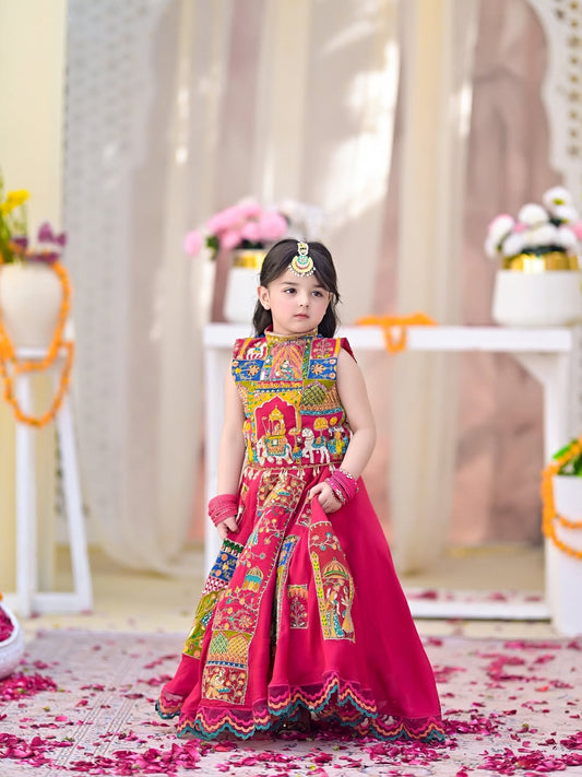 Royal Rani Pink Patchwork Lehenga Choli Set for Girls