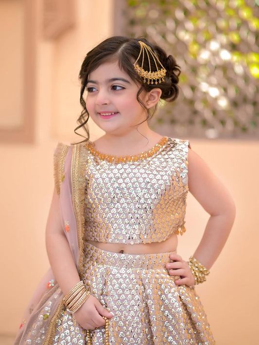 Royal Mustard Patchwork Lehenga Choli Set for Girls