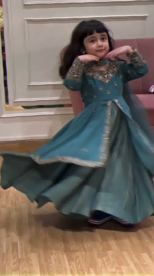 Teal Blue Embellished Gharara Set for Girls
